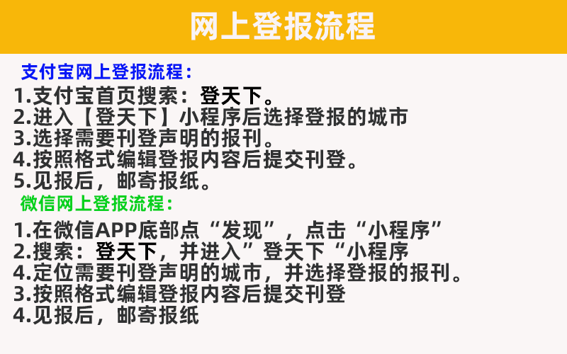 2.办理登报时主要登报声明公告的内容格式,要按照要求进行编辑。