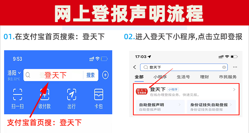 职称证丢了需要进行登报声明,以确保相关证明文件的有效性和公信力。今天小编给大家分享一个快速登报的方式,点赞,收藏,以防找不到。1.网上登报首先打开支付宝,在支付宝首页搜“登天下”2.选择你所在的城市,按照小程序的提示开始登报。